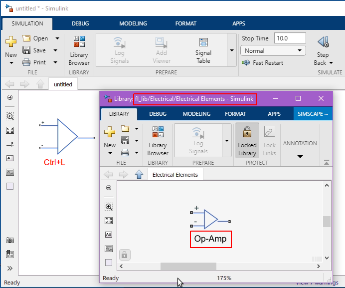 Note that as the fl_lib is referenced by 'Foundation', the SysPhS 'Name' is foundation.electrical.elements.op_amp.