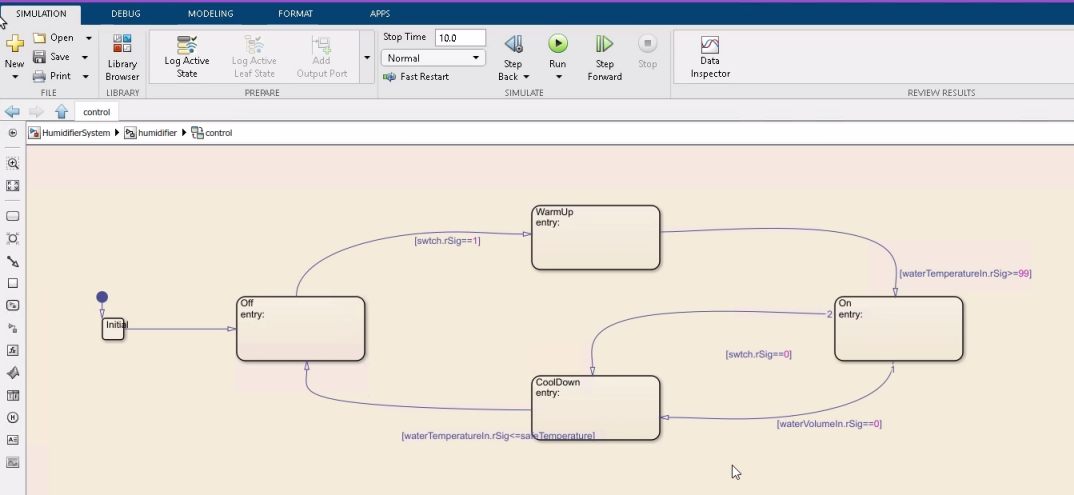 A significant feature when using Enterprise Architect's SysML simulation is the ability to generate MATLAB Stateflow diagrams to be run under Simulink, allowing you to guide your SysML simulations using StateMachines modeled in Enterprise Architect that are translated to Stateflow diagrams.