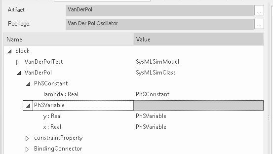 In releases of Enterprise Architect prior to Release 15.2, for each Part/Property the type and options were defined within the Configure SysML Simulation window, opened from the SysMLSim Configuration Artifact. This approach is still valid and available; however, using the latest features of the SysPhS Standard you can now define simulation parameters in the model itself, meaning you can generate to different simulation tools (Simulink and Modelica), from the same model and make adjustments at an elemental level.