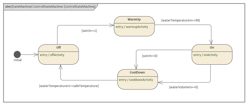 Enterprise Architect will translate a SysML model into the Simulink format and automatically run the simulation, plotting the outputs of the selected variables. The generated Simulink file can also be opened directly in Simulink, allowing modification and fine-tuning of the simulation settings and output functionality.