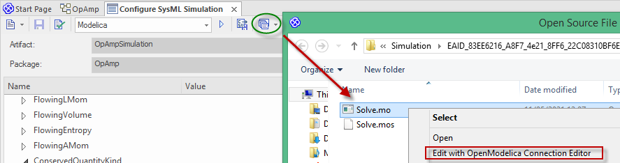 - For Modelica, in the Libraries browser, the diagram is named as per the SysMLSimModel Block - double-click on it to open it; here is a view of the OpAmp example, generated and opened in Modelica: