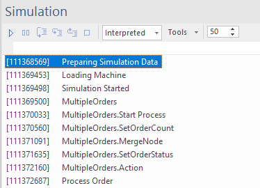 Model Simulation brings your behavioral models to life with instant, real-time behavioral model execution. Coupled with tools to manage triggers, events, guards, effects, breakpoints and Simulation variables, plus the ability to visually track execution at run-time, the Simulator is a multi-featured means of 'watching the wheels turn' and verifying the correctness of your behavioral models. With Simulation you can explore and test the dynamic behavior of models. In the Corporate, Unified and Ultimate Editions, you can also use JavaScript as a run-time execution language for evaluating guards, effects and other scriptable items of behavior.