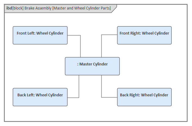 Blocks are classifiers and describe the characteristics of a set of elements that represent how the Block is used in a context. When the Block has attributes (value properties) defined, these are given specific values in the Block instances. Effectively, each Block instance has an identity and typically would have different values assigned that define the Block's state. Enterprise Architect allows these values to be specified using a Set Run State option available from the context menu. Block instances are properties or parts. Thus an engineer working in an automotive domain could define aspects of a vehicle's braking system showing blocks representing a master cylinder's relationship to a wheel cylinder defining a multiplicity of 3..4. The engineer would place instances of these blocks on Internal Block diagrams to express how the parts work together to carry out the behavioral contracts of the system.