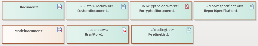 The Encrypted Document Artifact is indicated in the Toolbox page, diagram and Browser window by a red 'document' icon - Encrypted icon.