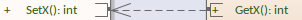 The diagram now shows the connector between the two elements, with the end or ends that specify a feature having a square bracket and anchor point, as illustrated here: