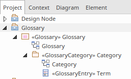 - In the Browser window, click on the host Root Node, View or Package for the Glossary (perhaps within an Administration or Resources section of your project).