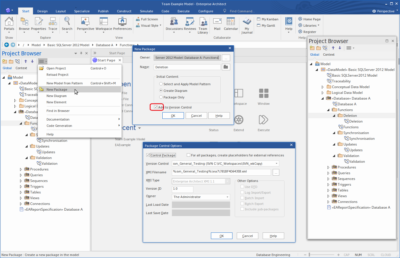 Before you can Check Out a Package and begin making changes, you or the librarian must first configure the Package for Version Control. You simply select the 'Add Branch to Version Control' option and choose an existing configuration. This adds the Package to the Version Control System and places it in a Checked-In state.