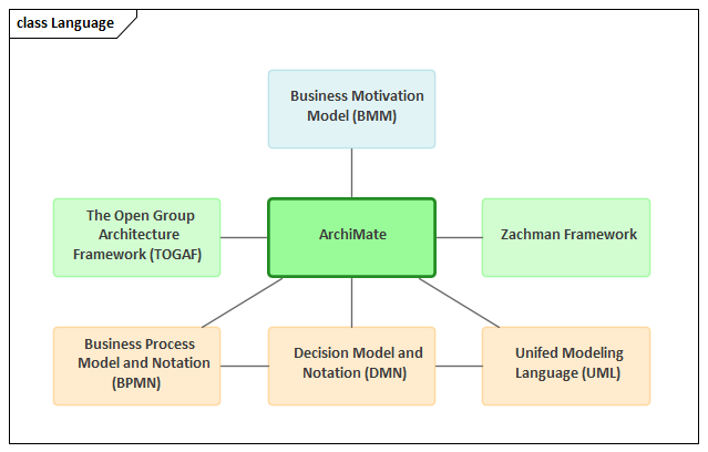 Figure: Showing the relationship between ArchiMate and other modeling languages.