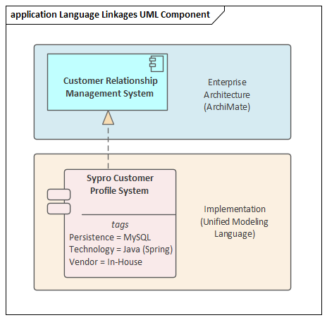 Figure: The relationship created between an ArchiMate application component and a UML component