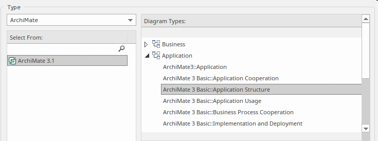 In the next diagram we see two Toolbox pages that are applicable for the Application Usage Viewpoint. The first page contains a subset of the Application Layer elements used for the Viewpoint and the second page contains a subset of the Business Layer elements.
