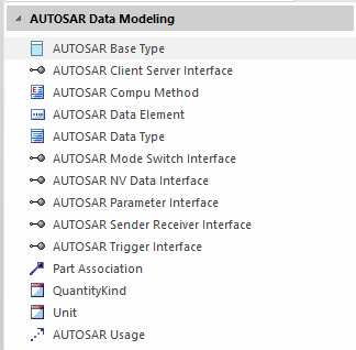 Used to define AUTOSAR data types such as Values, Arrays, Structures and Type References. You can set the type using the element Tagged Values.