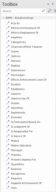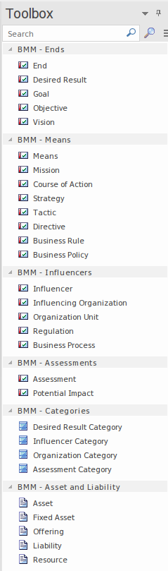 You can develop Business Motivation Model diagrams in Enterprise Architect quickly and easily. The BMM facilities are provided in the form of: