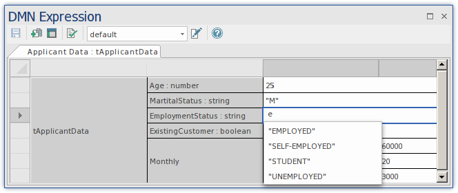 DMN Expression Auto Completion