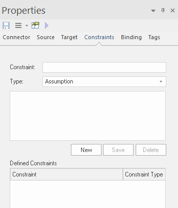 Displays a list of the constraints defined for this connector.