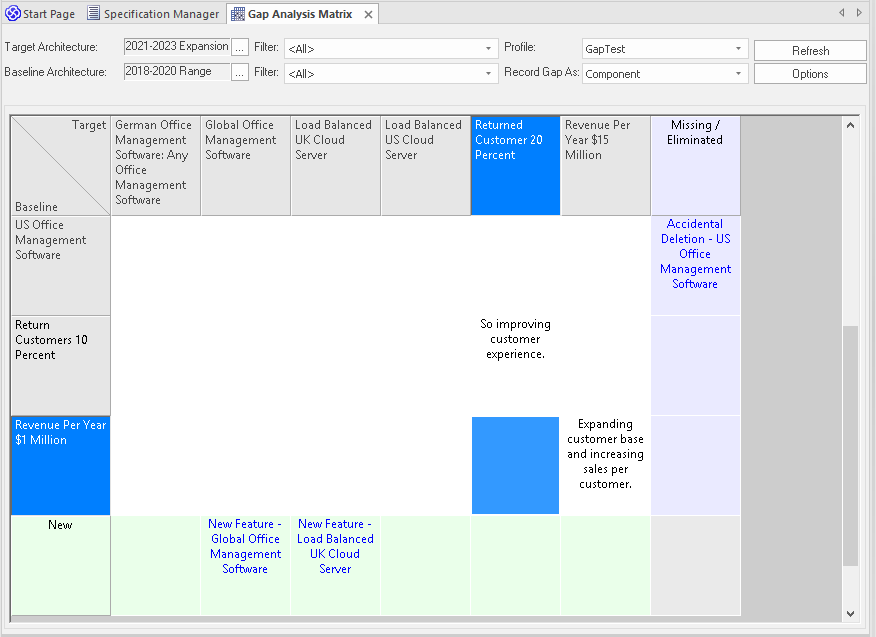 • The Gap Analysis Matrix is available in the Corporate, Unified and Ultimate Editions of Enterprise Architect