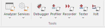 Click on the drop-down arrow to display a list of commands for starting and working with the application Profiler.