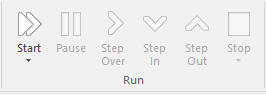 • Stop - stops the Debugger and stops the process that is being debugged (the default when you just click on the ribbon icon)