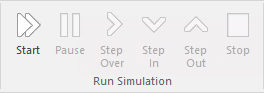 The 'Run Simulation' panel provides a number of buttons to control execution of the active simulation.