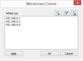 Displays a list of whitelisted client addresses. The client address can be either an IPv4 or an IPv6 address; that is, 255.255.255.255 or ABCD:EF01:2345:6789:ABCD:EF01:2345:6789. |