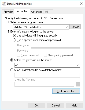 - Select the 'Use Windows NT Integrated security' checkbox.