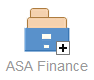 In Icon view, each object is represented by an image and an object name. As an example, a root node with the name 'ASA Finance' would be represented by: