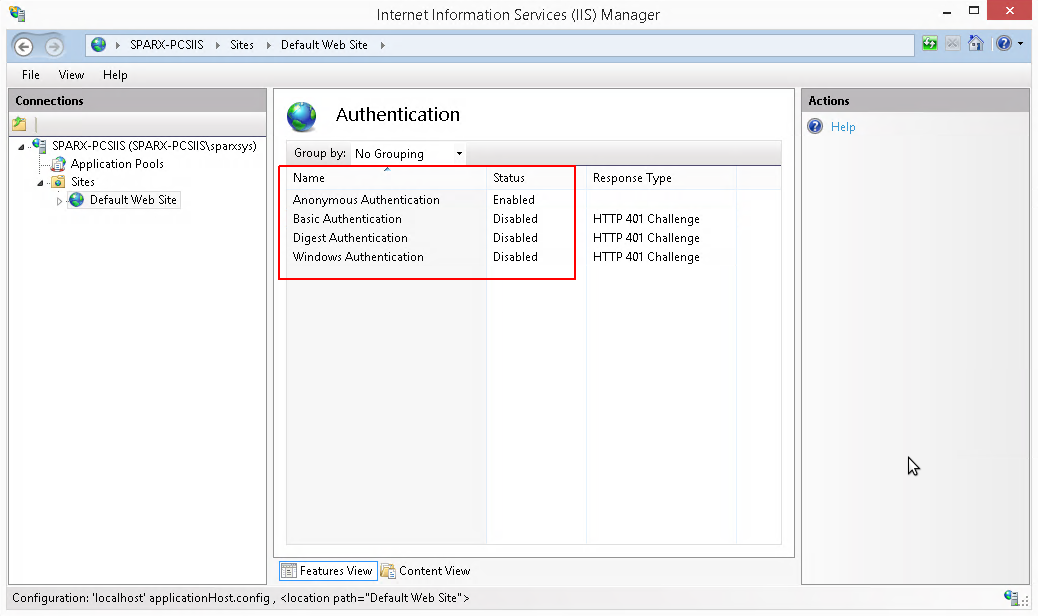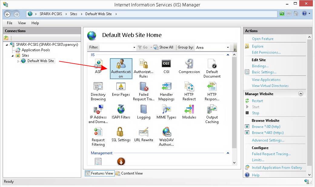 IIS Windows Authentication can cause a conflict with WebEA's Windows Authentication option. If WebEA is deployed using IIS and you wish to use WebEA's 'Login with Windows ID' then the WebEA site itself must have Windows Authentication disabled as described below.