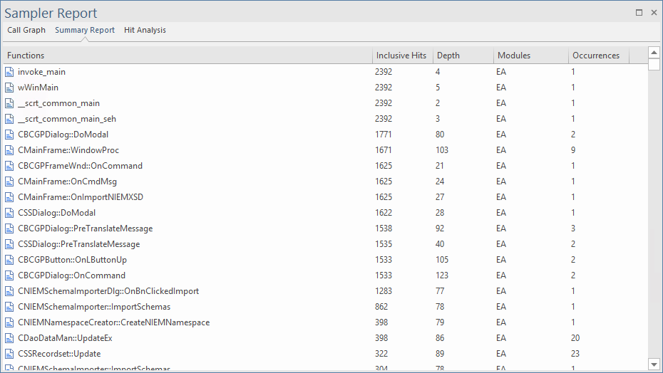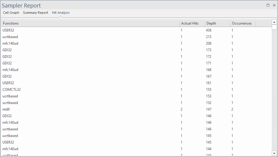 • Occurrences:  the number of times the function was hit at this particular stack depth