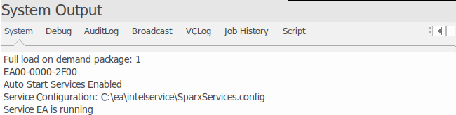 This option automatically starts services having the 'status:ON' attribute when the model opens. ![]() The messages logged to the System Output window here when the model is opened indicate that the service was already running. |