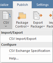 Enterprise Architect has a useful facility to import (or export) content from a spreadsheet using a comma-separated values (csv) file. Any data in your favorite spreadsheet can be exported to a csv file and imported using a simple and intuitive interface where you specify which properties you want the data to be added to. You can also export data from Enterprise Architect into a spreadsheet if required. There are a number of tools that enable you to do this, but the most straightforward of these is available from the Publish ribbon.