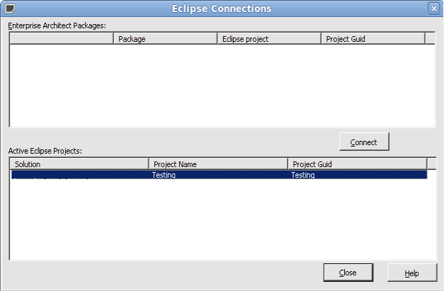 ![]() Select the project you opened in Eclipse using the 'Connections' dialog. |