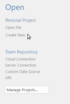 In the 'Open' section on the Enterprise Architect Start Page, click on the 'Create New' option