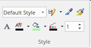 In addition to diagram themes and styles, Enterprise Architect also allows styles to be set for each individual element. These Styles include fill, border and font colors, and line and border thickness. These settings and others are available from the style panel of the Layout ribbon and the element icons on the right hand side of a diagram object.