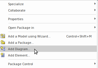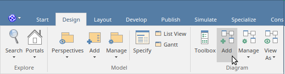 If you are starting a new project and have just set up your repository, you will not typically have elements in the Browser window so you will make more use of the first option and create elements from the Toolbox. As your project progresses it will become more common to use the second option and drag existing elements from the Browser window onto the diagram.