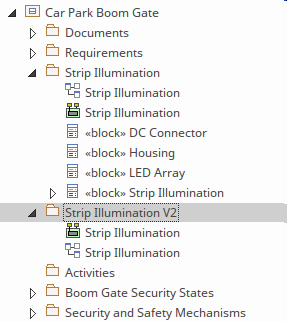 The Browser will show the newly created (version 2) element that will be collated with the diagram. In this way the cloned Package will only contain elements and diagrams with the new version number. For more information see the Time Aware Modeling Help topic.