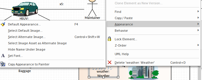 This change of element appearance can be applied at a (default) global level or at a diagram specific level allowing alternative presentations to be created for different audiences.