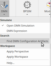 Simulate > Decision Analysis > DMN > Find DMN Configuration Artifacts.