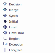 There are also Control Nodes that can be used with Control Flows to orchestrate the way the Flows work with the use of Forks, Joins, Decisions and Merges. There are three specialized nodes: Initial, Final and Flow Final, that act as the start and finish of the flow respectively. The Final (formally Activity Final) node is used to indicate that when a token arrives the entire Activity terminates, whereas the Flow Final will consume incoming tokens but will have no effect on the enclosing Activity.