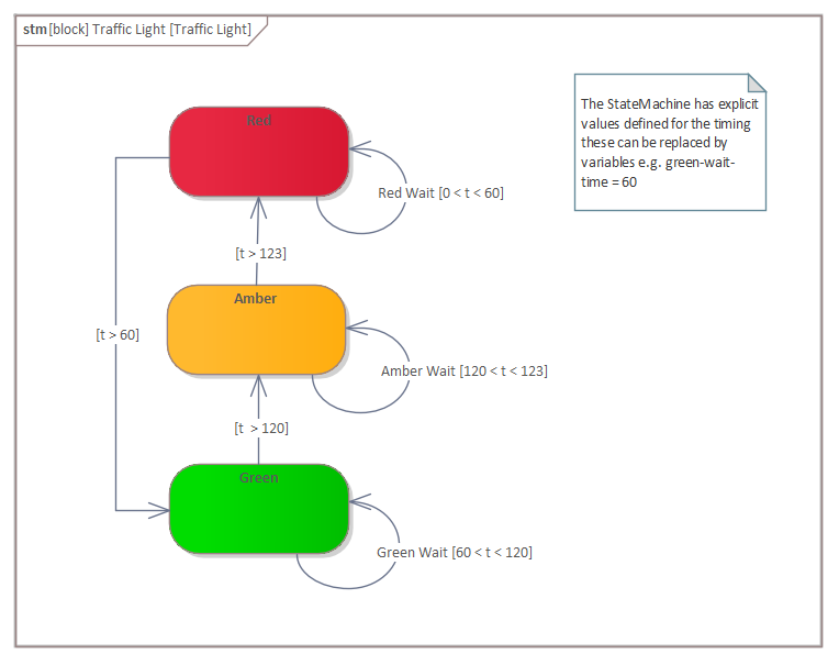 This diagram of the changes of a traffic light, like any StateMachine diagram, can be converted to a State Table.