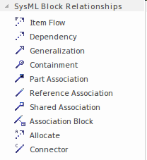 The main elements that can appear in Block Definition diagrams are provided by the Diagram Toolbox for this diagram type: