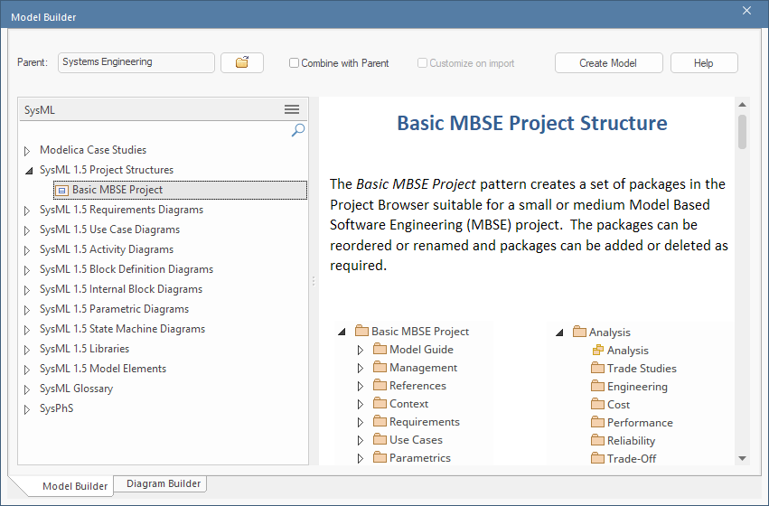 Enterprise Architect has been designed as a productivity tool from the ground up, and setting up a model structure - sometimes a daunting task for the beginner and tedious for the experienced user - is made simple in Enterprise Architect by the use of the Model Builder.