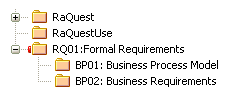 In order to configure a Package to save and load in Native/XMI format to a named file, you use the 'Package Control Options' dialog to flag the Package as being controlled and to set a number of options. These options include setting the filename to save to/load from, the type of Native/XMI to import and export, and whether to export and/or import the Native/XMI in a batch process. When the Package is configured, this is indicated by a small colored rectangle on the left of the 'Package' icon in the Browser window, as shown for the RQ01: Formal Requirements Package.