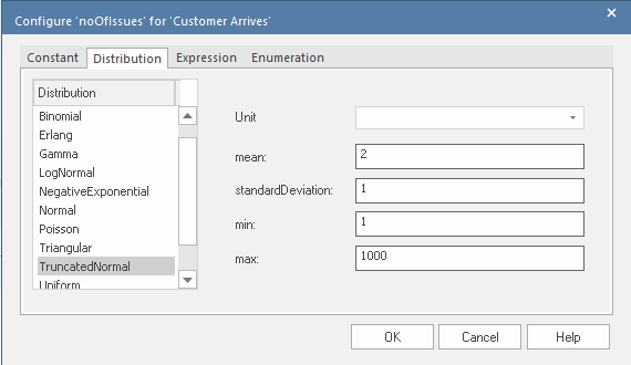- Click on the to return to the Configure BPSim window, where the expression is shown in the 'Values' field