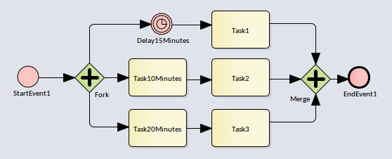When time parameters are configured on the BPMN elements, Enterprise Architect can generate a Timing diagram for the simulation process.