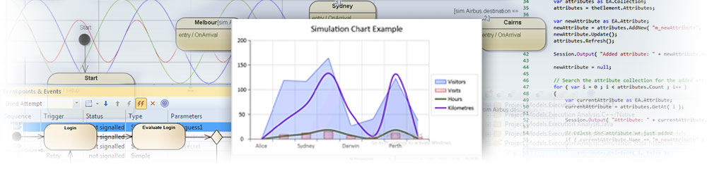 Enterprise Architect is much more than just a modeling tool and a repository for your business, technology, and engineering models. The platform has sophisticated facilities that allow you to bring your models to life with simulation and watch the wheels turn, tools to manipulate and transform your models programmatically, and execution analysis to create profoundly beneficial models of built applications.