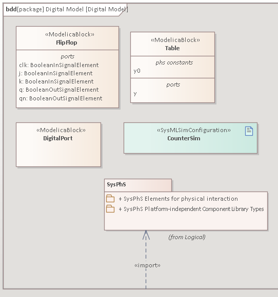 This will automatically have a Boundary frame around the elements. - Drag the SysPhS library Package onto the diagram.