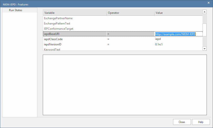When setting the run state values for properties with simple types in the IEPD object, you can use the 'Set Run State' command. This can be accessed by right-clicking the Object on a diagram, then choosing 'Features | Set Run State...' (or by pressing ).