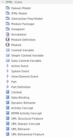 - IFML 'Essential Concepts', 'Core' and 'Extensions' pages in the Diagram Toolbox