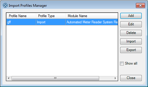 If an appropriate profile to use is not listed in the 'Profile Name' field, click on this button to display the 'Import Profiles Manager' dialog (see the Manage Import Profiles table). |
