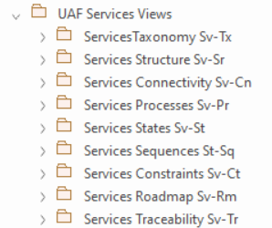 The UAF Services Views encompass a set of viewpoints that describe services and their interconnections in support of DoD functions, covering both warfighting and business domains. These viewpoints link service resources to operational and capability requirements, ensuring alignment with operational activities and enabling effective information exchange. Within the broader architecture, they explore how services are contextualized by mapping resource flows, analyzing service functionality and behavior, modeling task workflows and functional decompositions, and creating matrices that define relationships between systems and services. They also capture the specifications of service connections that implement operational resource flow exchanges. Taken together, the Services Views provide a comprehensive perspective on service-oriented architecture, bridging operational needs with the technical realization of services that underpin organizational functions and enterprise-wide information sharing.