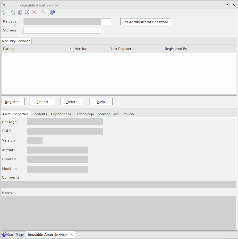 • The Set Administrator Password button is displayed next to the 'Registry' field